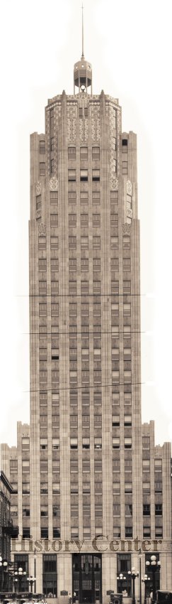 A fantastic example of the Art Deco movement, the tower rises twenty-two stories high (312 feet) and was for a time the tallest building in Indiana until 1962. Building materials range from hand-wrought bronze, Milford granite, Italian Travertine marble, several rare types of green Vermont marble and Indi-ana limestone. All these luxurious materials blended to form this iconic addition to the Fort Wayne city-scape.