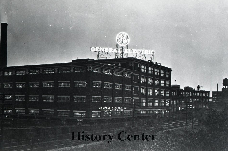 When Thomson-Houston merged with Edison General Electric in 1892, Fort Wayne Electric became a subsidiary of the new General Electric Corporation. Thus, Jenney Electric became one of the first locally-founded industries to be absorbed by a national corporation. General Electric, at one time pro-viding thousands of jobs for residents, moved the last of their operation elsewhere in 2015 leaving the fate of the massive plant complex unknown. The giant lighted monogram sign that sat atop Building 4 was a fixture of the Fort Wayne skyline since 1928, going dark only during World War II before its most recent absence from the night sky when GE moved their operations.