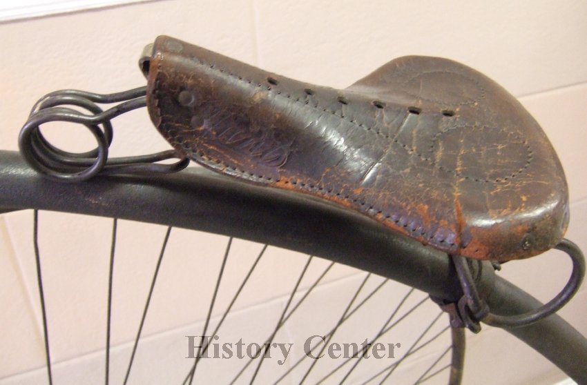 Ordinary bicycles were built over a twenty-year period-from 1871 to 1892, though they were not known as "Ordinaries" until the 1890s when "safety bicycles" with smaller wheels became popular. This Columbia Light Roadster bicycle was used around 1884. The Light Roadster was available with seven sizes of front wheels, from 47 to 59 inches. The front wheel of this model stands a staggering 57 inches high! The Pope Manufacturing Company, which manufactured the Columbia, was founded in the 1870s and was the first company to manufacture bicycles on a large scale in America.