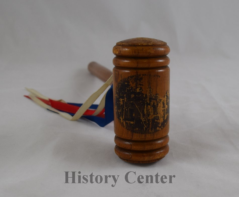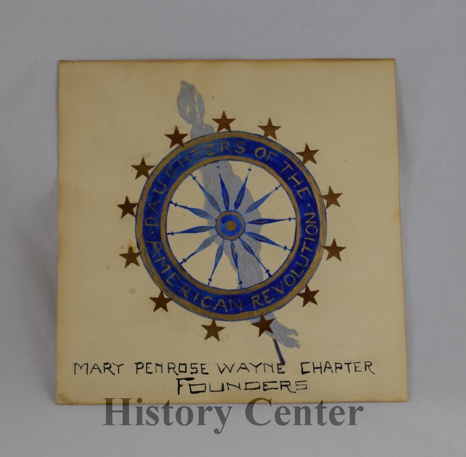 Fort Wayne's Mary Penrose Wayne Chapter of the Daughters of the American Revolution was organized on 18 December 1901 and the charter was issued on 20 January 1902. The organization has contributed to the community playing a significant role in starting the genealogy collection for the Allen County Public Library. The DAR's "Relic Room" display in the Allen County Courthouse also became the roots of the History Center's permanent collection when the artifacts were moved to the Allen County-Fort Wayne Historical Society museum in the Swinney House in 1927. This gavel was used by the Mary Penrose Wayne Chapter during its early meetings.