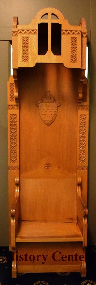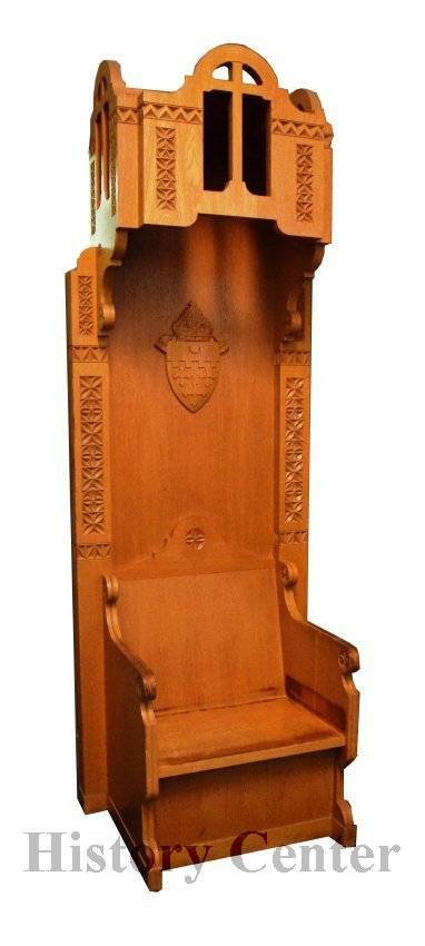 Writer, educator, priest and speaker, John F. Noll was ordained as a priest at the young age of twenty-three and made it his mission to share the Catholic faith with a wide audience. From writing early pamphlets to founding of Our Sunday Visitor, a Catholic English language publication, Noll did indeed spread the word. In 1925, he was appointed the fifth Bishop of Fort Wayne and was granted the honorary title of Archbishop in 1953. The chair was used by Bishop Noll from 1953 to 1956. It was originally located in the Crosier Center on Wallen Road, a seminary operated by the Crosier Fathers from 1938 to 1974.