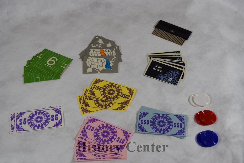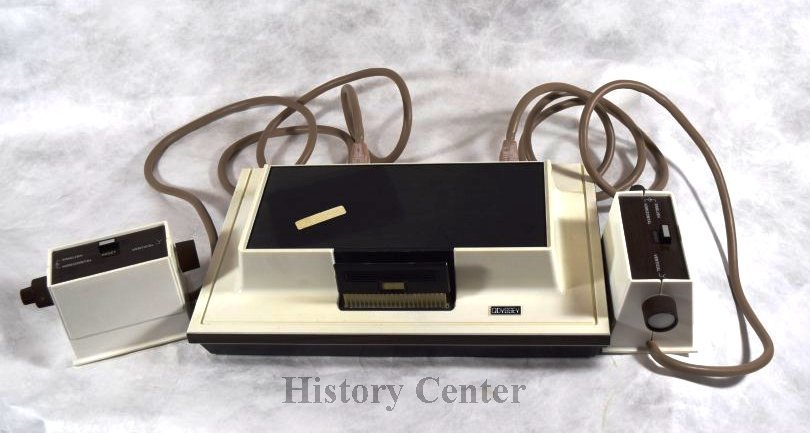 Four years before the release of Atari and Intellivision, Magnavox Consumer Electronics Group engi-neers, working with inventor Ralph Baer (1924-2014), produced the Odyssey home video game in 1972. A cross between a board game and an electronic game, the first version of Odyssey had clue cards, score cards, 19-inch television screen overlays and controllers. The Odyssey II was produced in 1979, but was not able to compete with more advanced game systems and was discontinued in 1983. The Odyssey I in-cluded a Ping-Pong game similar to the Pong game for which Atari became so well-known. Magnavox filed suit against Atari over the similarities in 1974 and settled out of court. This original Odyssey game, Model 1TL200, includes all its original accessories including screen overlays, cards, chips, play money and dice. It is made of white and brown plastic and contains two controllers. It cost just under $100.