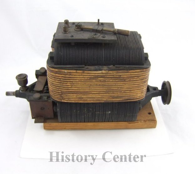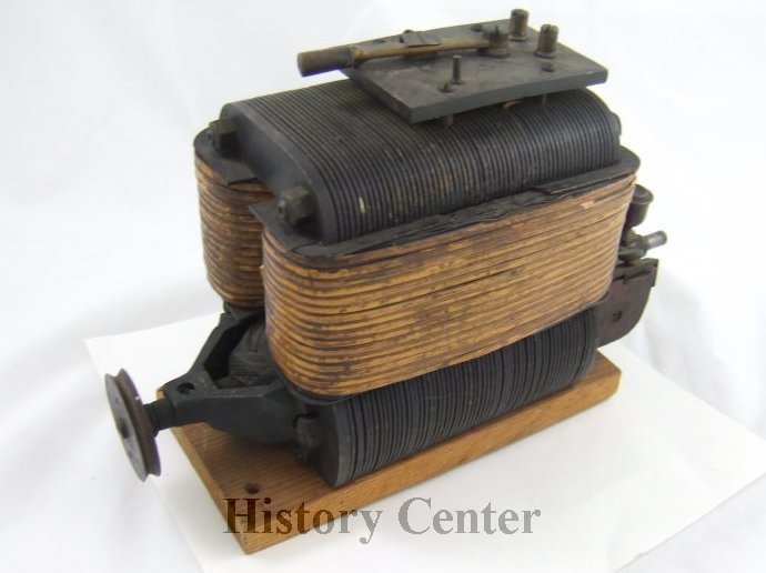 Marmaduke Marcellus Slattery (1851-1892) was born in Ireland. As a young man he developed his in-ventive nature in the lab and workshop of George Lane Fox in London. He came to the United States in 1881 and worked as an electrical engineer in New York and Boston before accepting the position of "electrician" at Fort Wayne Jenny Electric Light Company in 1887. He was a wizard in electrical power generation used in his "Alternating Incandescent Lighting System." By 1889 he was working on a storage battery to run electric motors for vehicle propulsion. He was often seen around town on his motorized tricycle that he invented operated by "Slattery's Battery." His achievements with electrical transmission garnered him the title of "father of the theory of Alternating Current (AC)." Duke, as many called him, rivaled even Nikola Tesla in the field of electricity. This c.1890 direct current motor was built at the Fort Wayne works and later General Electric engineers speculated it was designed by Slattery to drive his ex-perimental tricycle.