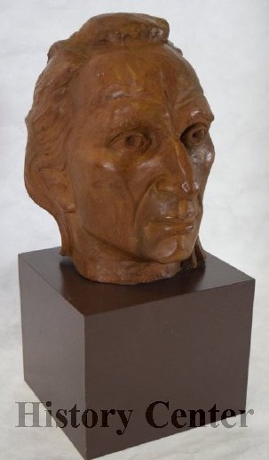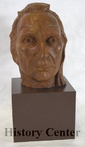 Considered the "Lasting Legacy" of the Fort Wayne Bicentennial Celebration, one of the features of Headwaters Park is a ten foot tall statue of Chief Little Turtle that was sculpted by local artist Hector Gar-cia. It was commissioned by the Fort Wayne American Revolution Bicentennial Commission, 1975-76. The molded bust was made of cold poured bronze alloy, formed in the mold originally created by Garcia for the statue. It was given to the Allen County-Fort Wayne Historical Society by the artist in 1984.